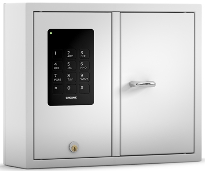 | Key-Box 9001 S series with 1 door and 29 key hooks. Display with simple menu navigation and programming. Can be expanded using up to 15 key cabinets from the expansion range. Administration can be performed using the KeyWin Light PC program. Can be connected to an external alarm and also be connected to an external alarm and also be connected to a card reader. Single power connection (110V - 230V) |